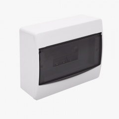 Passe o mouse e veja os detalhesQUADRO DE DISTRIBUICAO SOBREPOR 6UL/9DIN TAMPA FUME BET PLASTICOS
